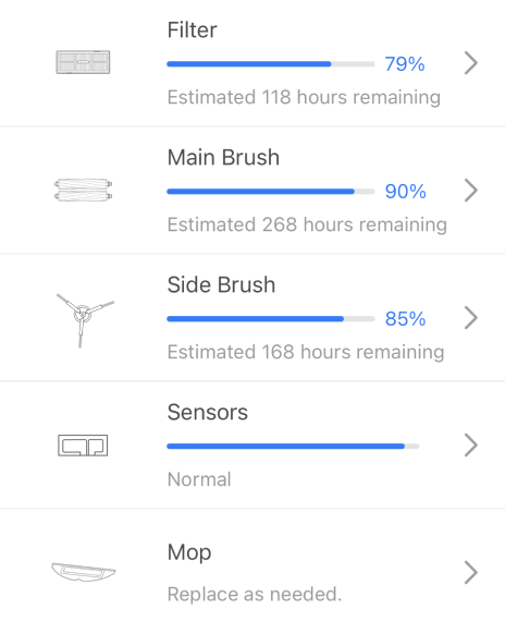 Se användningsstatusen för alla delar i din robot i realtid. På så sätt vet du när det är dags att underhålla eller byta ut dem.