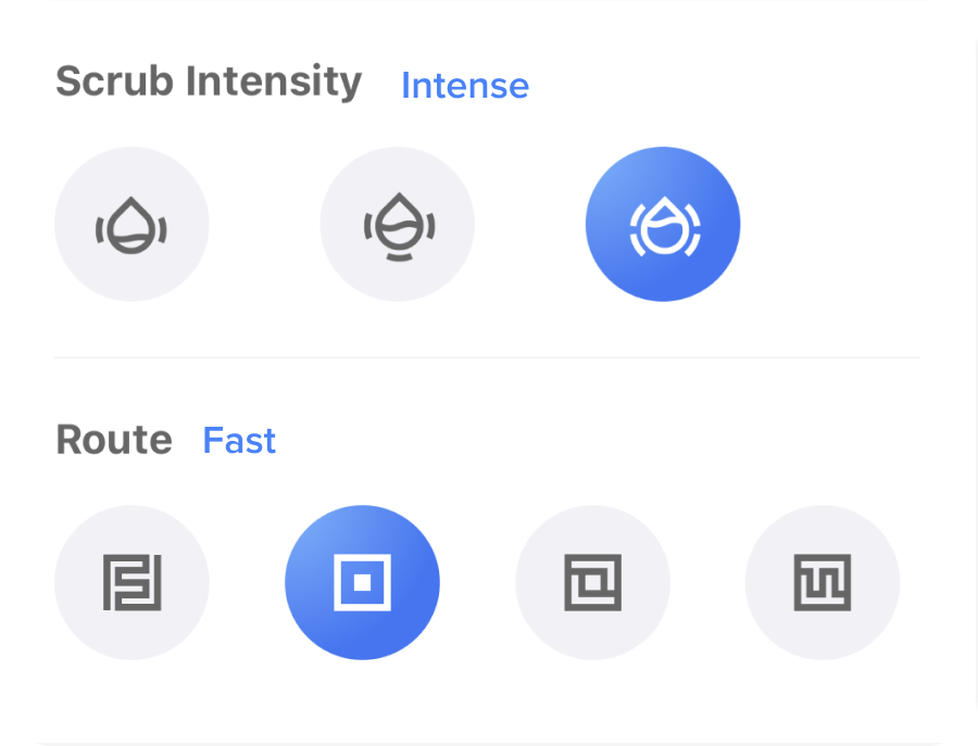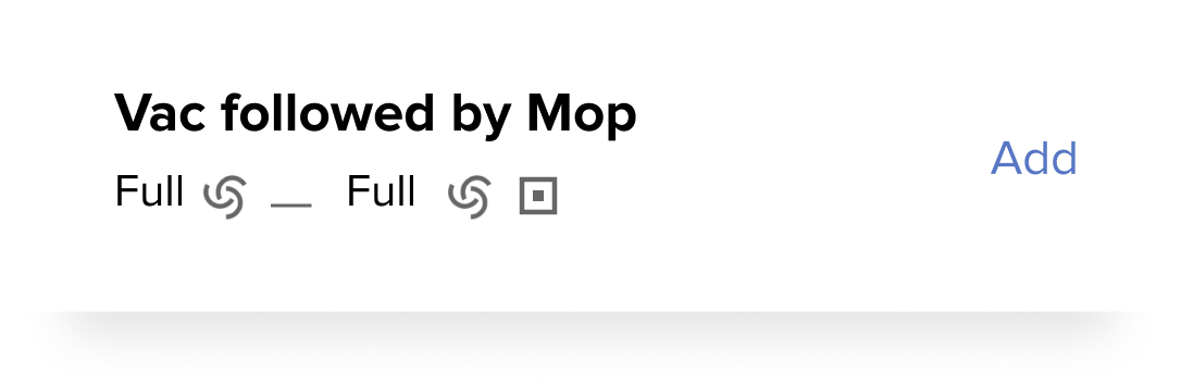 Skapa en städrutin som t.ex. städning under köksbordet efter måltider. Du kan välja tid, städläge och vilket/vilka rum som ska städas, sen upprepas rutinen automatiskt med de intervaller du önskar. Välj tid, städläge och det/de rum som ska städas, så upprepas de automatiskt.