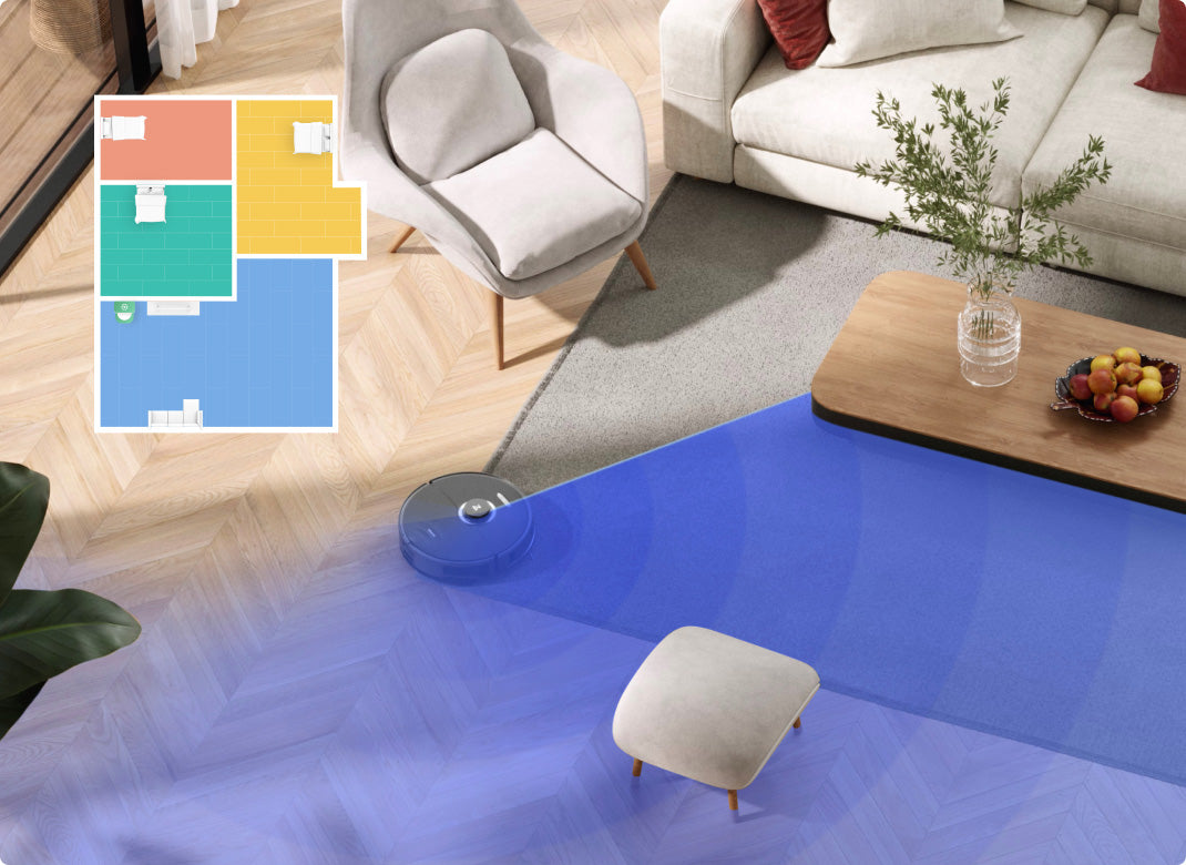 Första gången du använder roboten kommer den snabbt att skapa en detaljerad karta över städytan så att du kan påbörja städningen så fot som möjligt