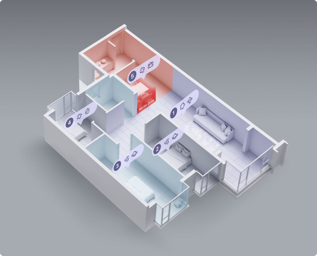 Robotdammsugaren föreslår förbjudna områden automatiskt för att hindra att din robotdammsugare fastnar i trånga utrymmen, eller råkar köra ner för trappor eller andra platåer.