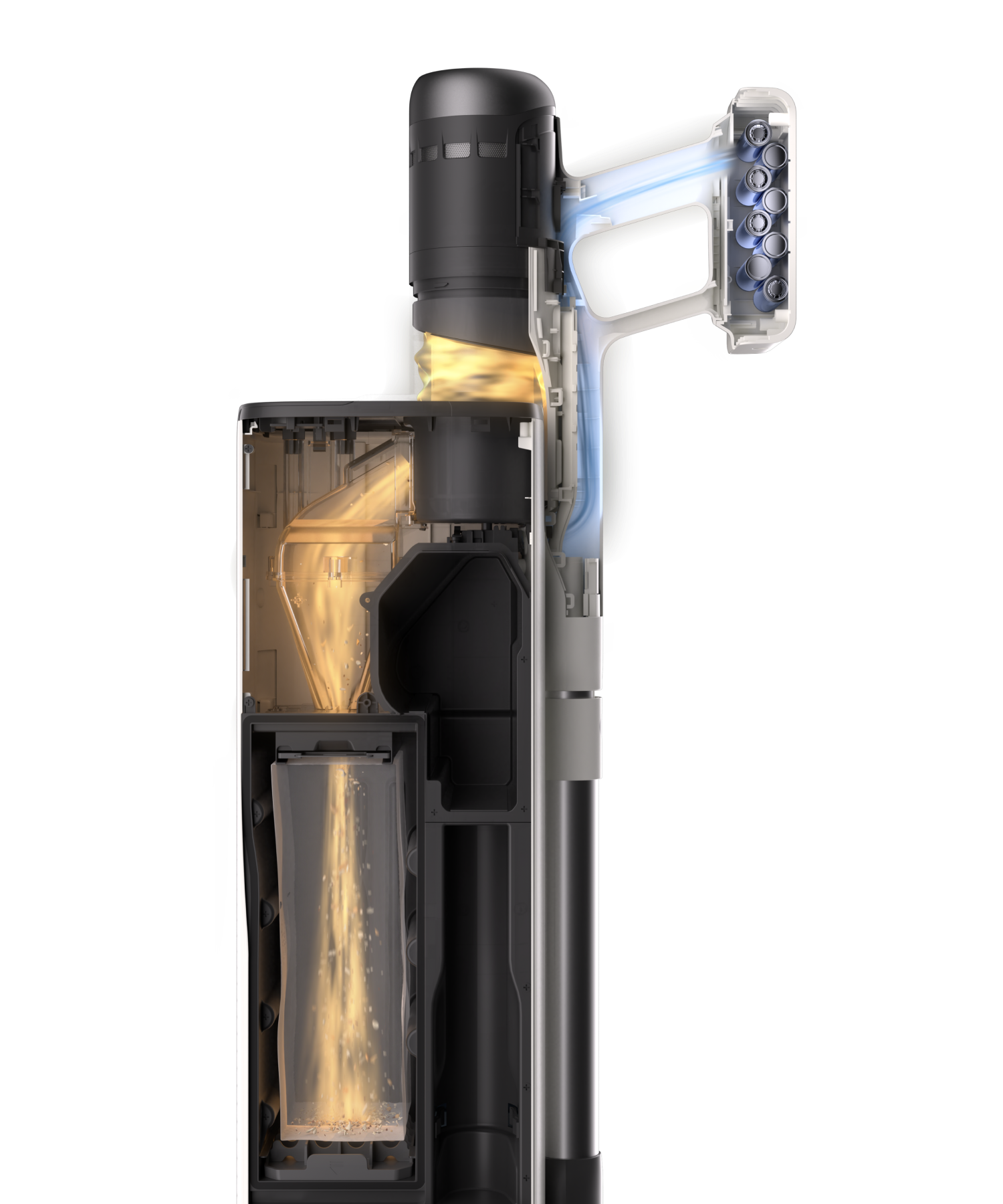 10. Testat av TÜV Rheinland baserat på standarden ASTM F1977-22. Testad i MAX-läge för att fånga upp partiklar med en diameter på 0,3–5 μm. Faktiska resultat kan variera beroende på användningsförhållanden. Filtreringssystemet i 5 steg inkluderar cyklonfiltrering, ett metallnät, en multicyklonkomponent, ett svampfilter och ett HEPA-filter. Testrapportens nummer: CN253JHD001.