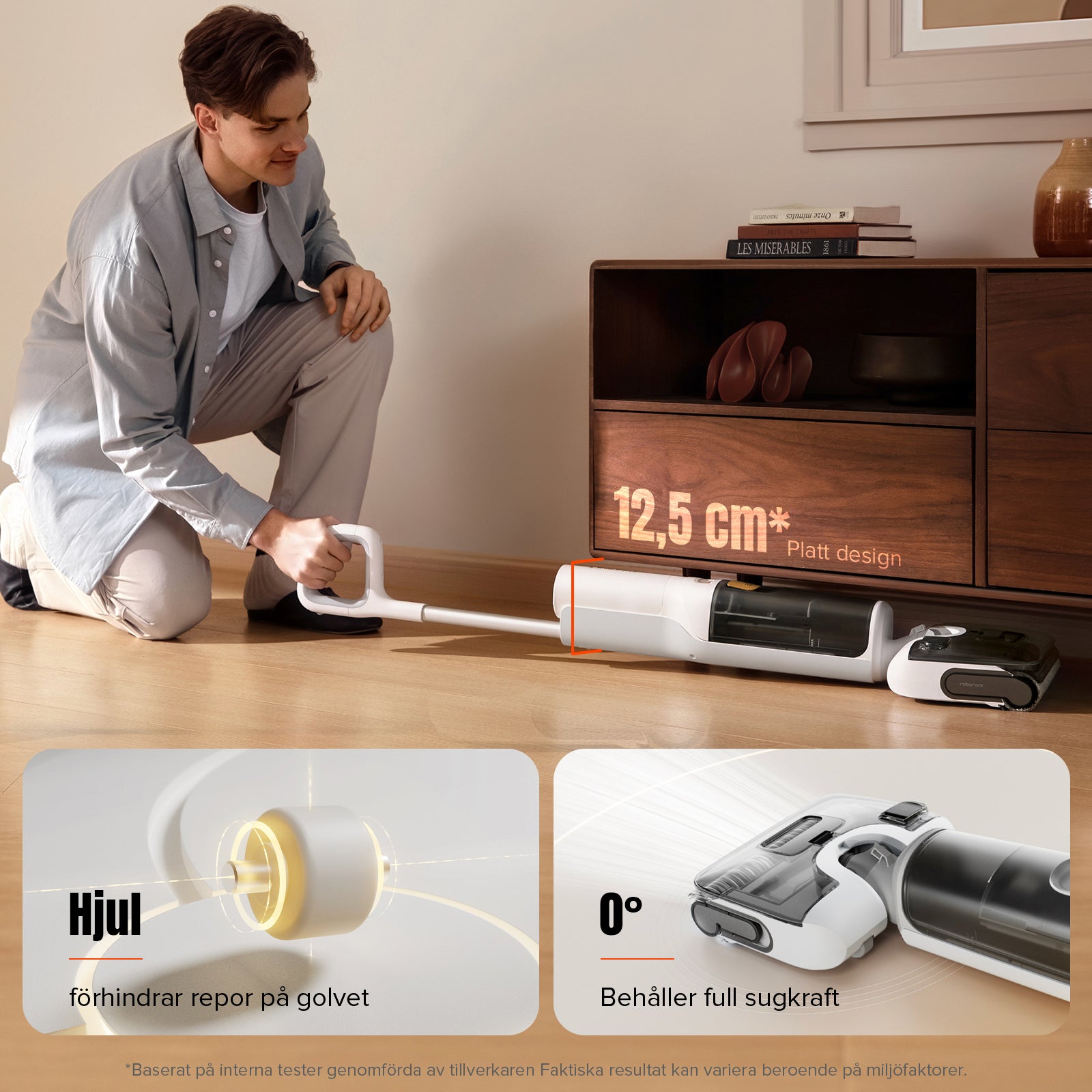 *Jämfört med andra Roborock våt- och torrdammsugare som lanserats före januari 2025. Faktiska resultat kan variera beroende på miljöfaktorer.
