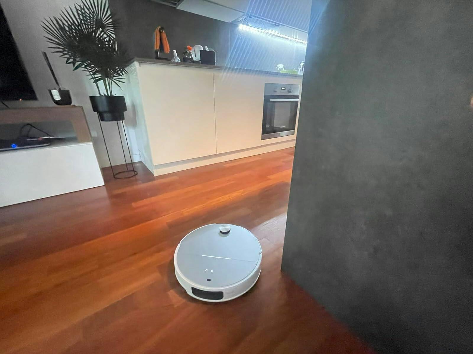 I läget AI laboratorie via Roborock-appen kan Saros 10 känna av våta fläckar, lyfta sitt flervägshjul och öka mopptrycket för djupare rengöring.